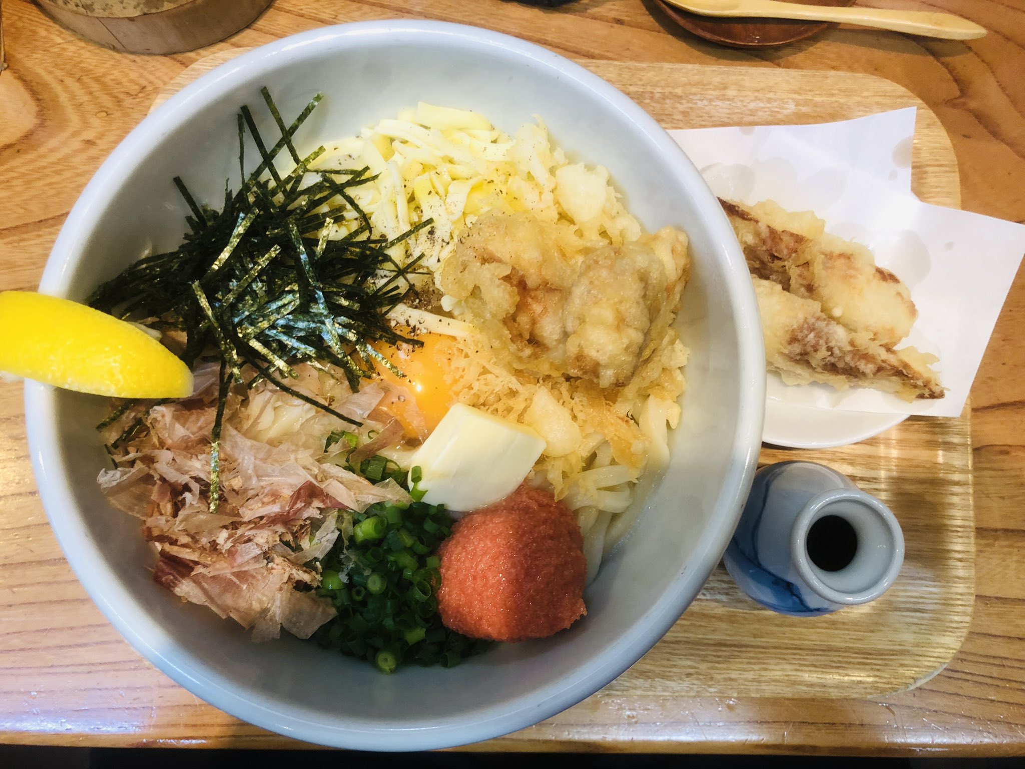 まめきち@ on X: "過日分ですが、由利本荘市のうどん屋「いちこま」さんでランチ。 RAMBO ランボー 大とちくわ天を注文!カルボナーラうどんとランランうどんの合体作で、バター、明太子、かしわ天など豪快で背徳感たっぷりの超美味しいうどんでした✨ちくわ天もサイコー。