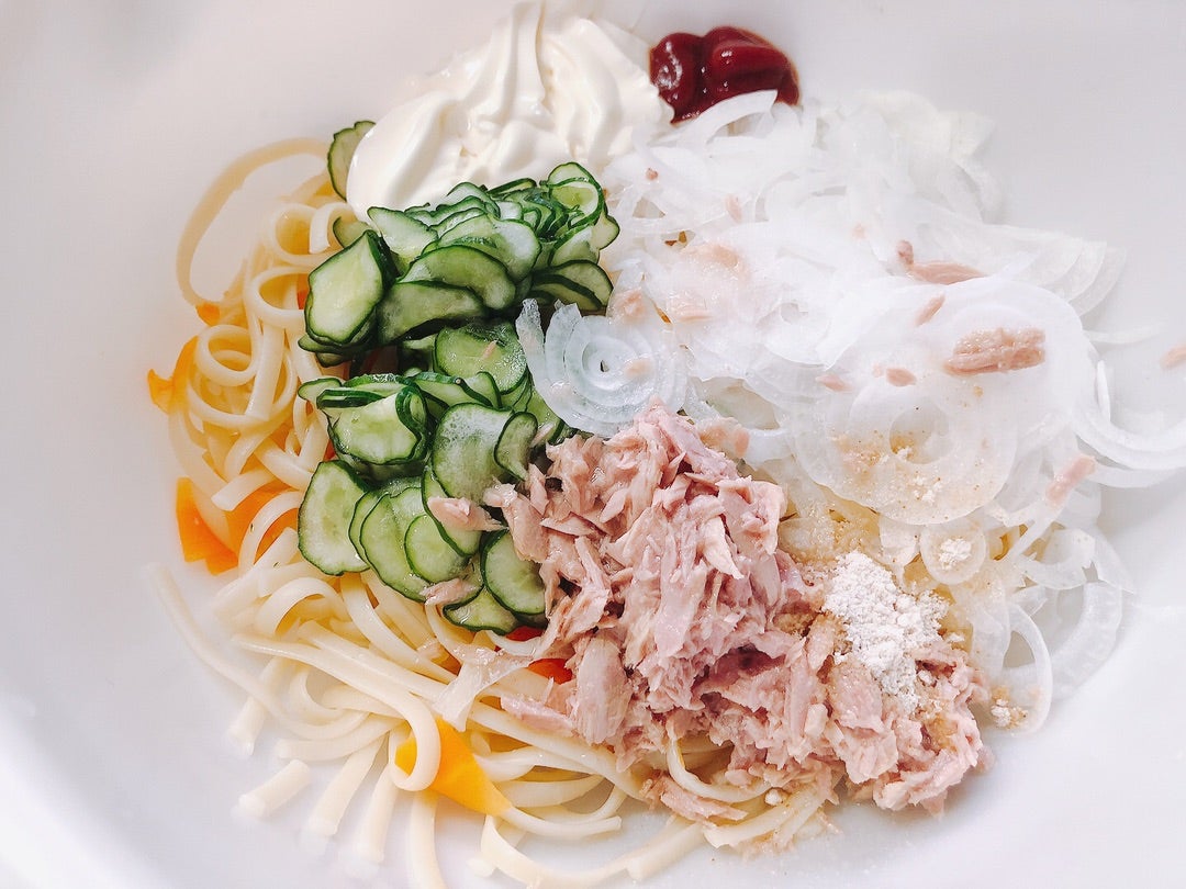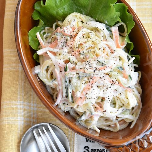 作り置きOK!濃厚とろとろスパゲティサラダの作り方。