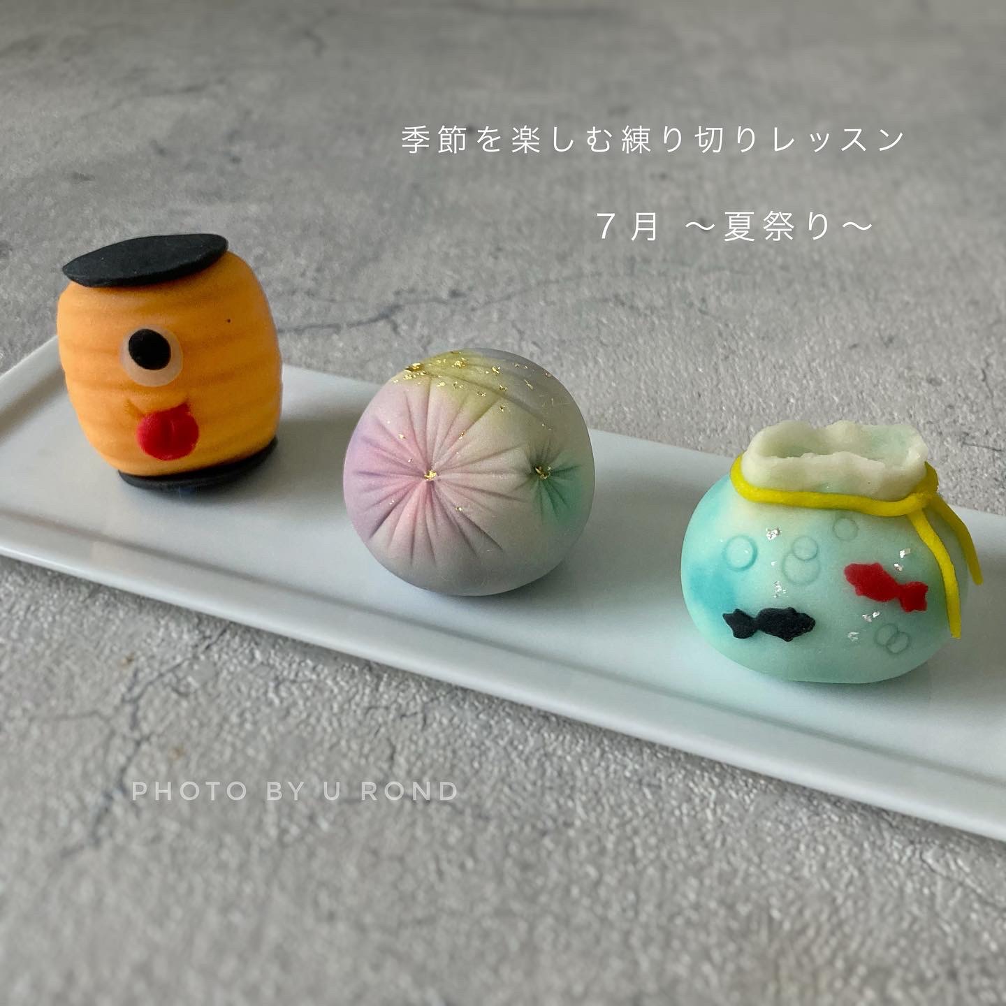 7月の練りきりレッスン 夏祭りを和菓子で表現お菓子教室 U rond ~ゆーろんど。