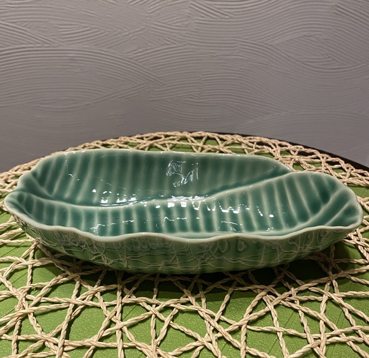 セラドン焼き タイ陶器皿バナナリーフ型約29cmEセラドン焼き バナナリーフの。