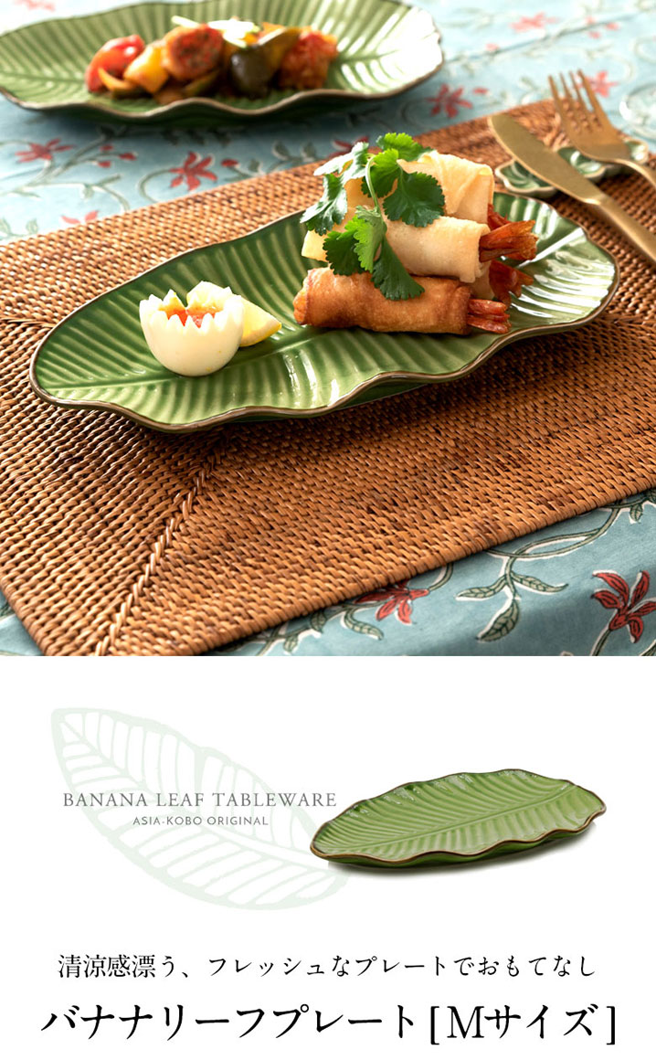 楽天市場 プレート バナナリーフ柄 Mサイズ 全長25.5cm グリーン 陶器製 食器 プレート リーフプレート リーフ皿 副菜 前菜 可愛い バリ島リゾート ギフト プレゼント カフェ レストラン おしゃれ キッチン雑貨 アジアン 雑貨 アジアン雑貨66809: アジア工房。
