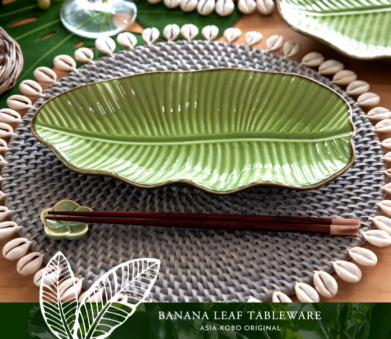 楽天市場 プレート バナナリーフ柄 Lサイズ 全長33.9cm グリーン 陶器製 食器 プレート リーフプレート リーフ皿 大皿 可愛い バリ島リゾート ギフト プレゼント カフェ レストラン おしゃれ キッチン雑貨 アジアン 雑貨 アジアン雑貨66810: アジア工房。