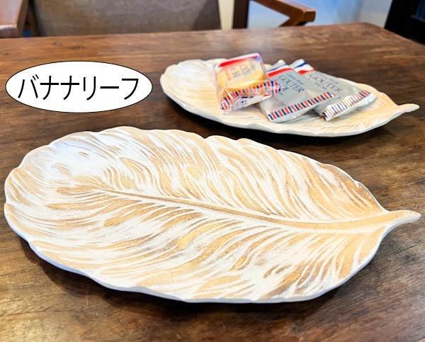 ホワイトウォッシュリーフトレイ モンステラ・バナナリーフ・葉っぱ。