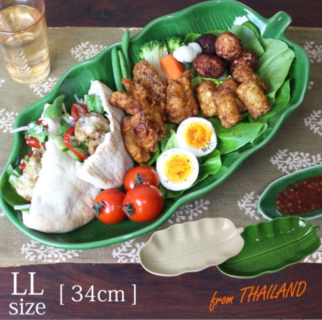 バナナリーフの中皿 28cm M タイ食器 セラドン焼き や雑貨の専門店ゆるんふる。