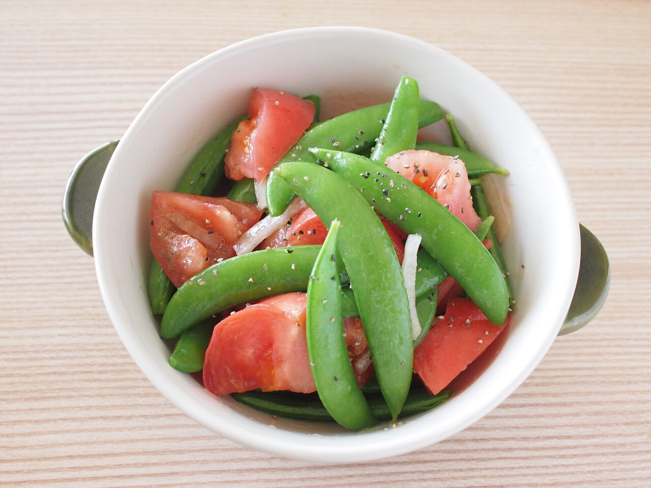 さくさくの歯ごたえ♪ スナップえんどうとトマトのシンプルサラダ。気まぐれキッチン andante。