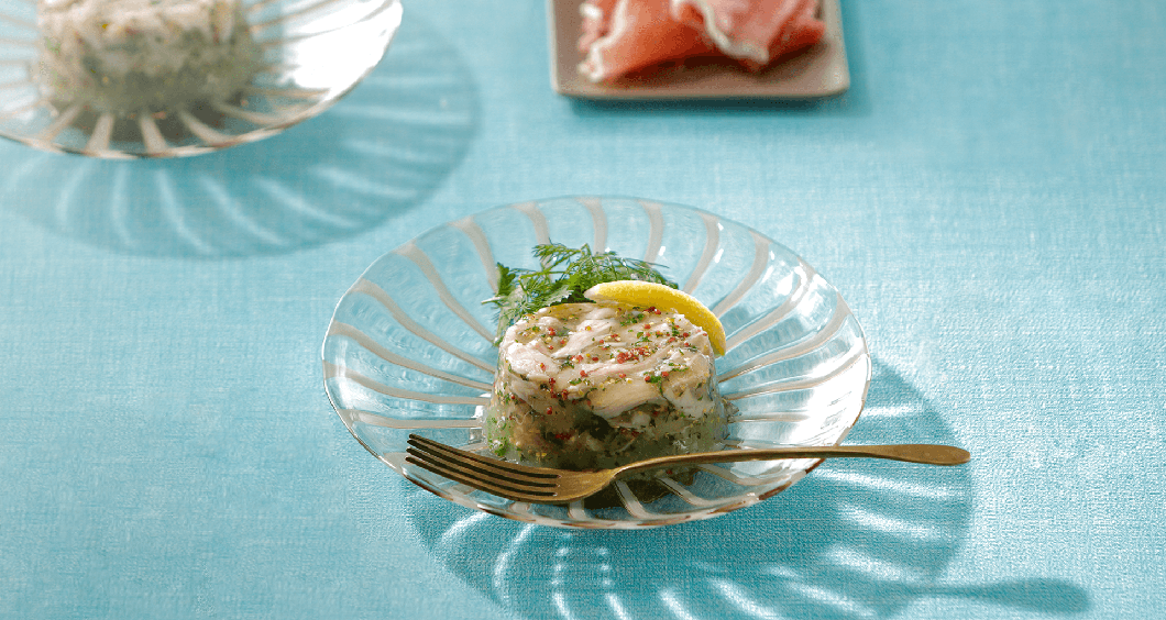 ひんやり冷たい「鶏肉とパセリの前菜ジュレ」デリッシュディッシュ_8月号 一条工務店。
