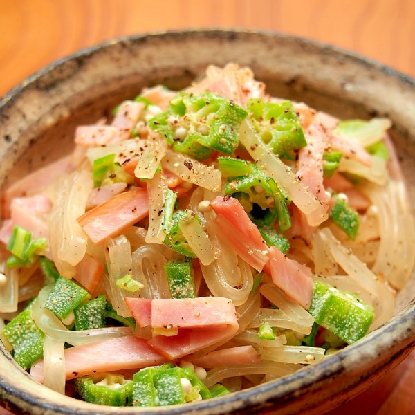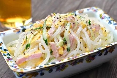 冷たくさっぱり『モチモチ!くずきりマヨサラダ』のレシピ。