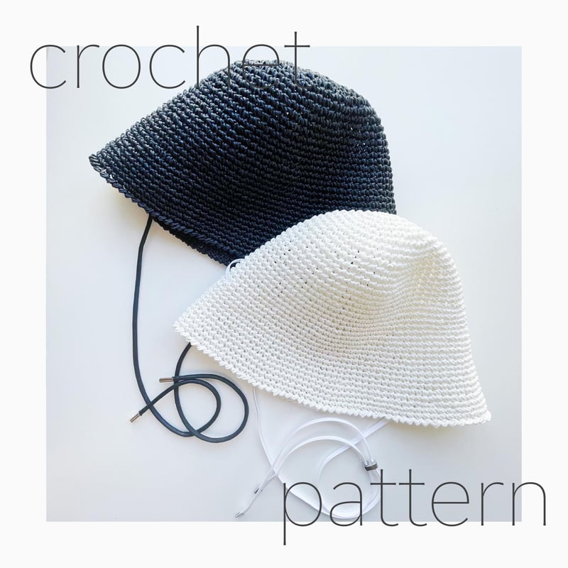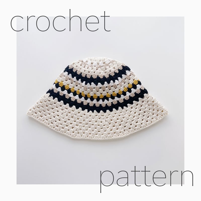 ダウンロード編み図:PDFデータかぎ針編み コットングラニーバケットハット M。
