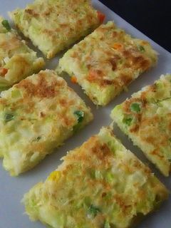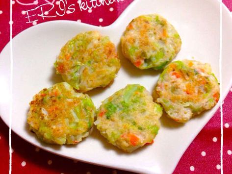 離乳食完了期1才から 低脂肪・高タンパク! 手づかみ食べに エビふんわり焼きママ 赤ちゃん 初めてでも簡単レシピ 作り方 recipe。