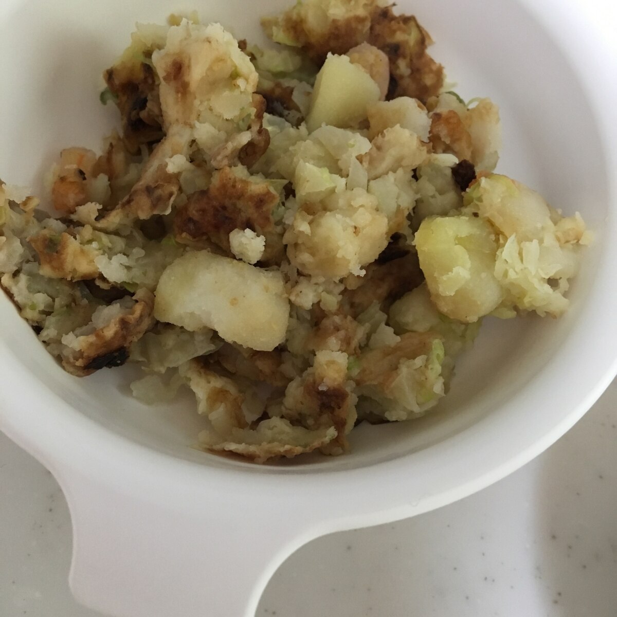 離乳食完了期 海老いもと里いものおかか揚げ焼き。