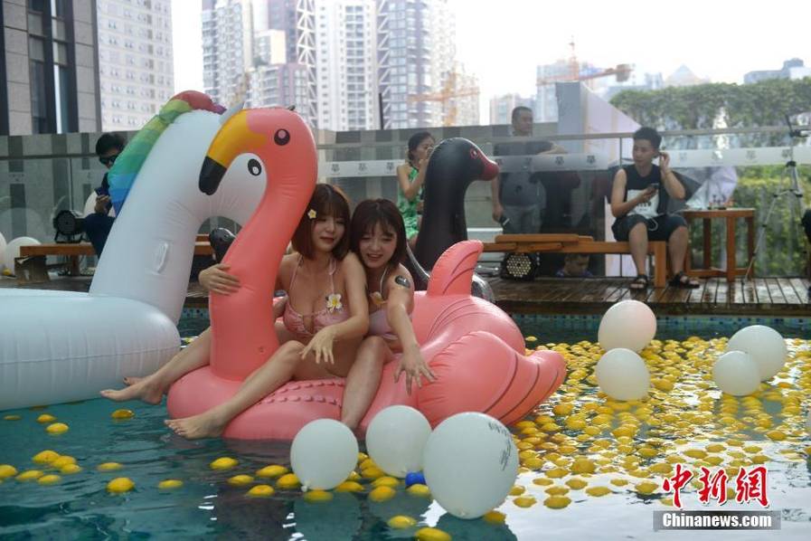 連日の酷暑、レモンパーティでビギニ美女が大はしゃぎ 成都--人民網日本語版--人民日報。