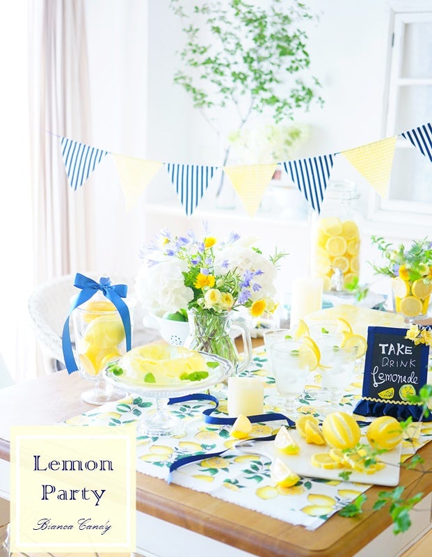 レモン色で爽やかに!初夏のレモネードパーティー@大人フォト部週末に飾りたい花!花のある暮らしのレシピ集♪フランススタイルのフラワー教室ビアンカキャンディ~辻堂・藤沢・茅ヶ崎~。