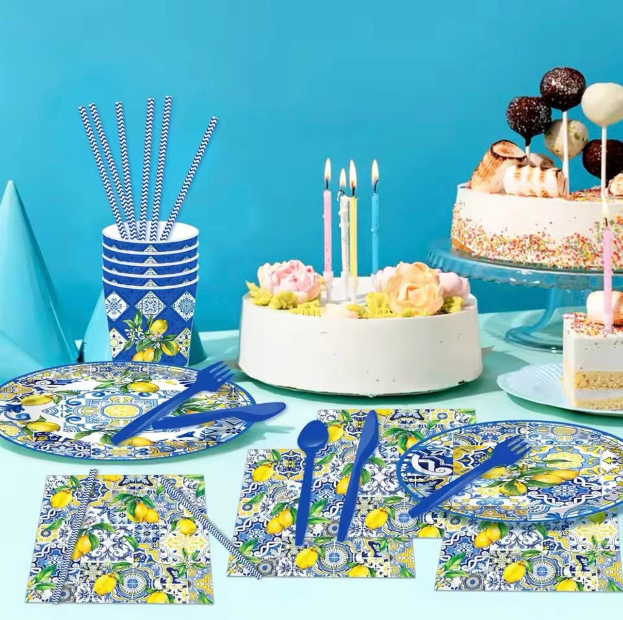 レモン地中海パーティー食器セット 78個- Etsy 日本。