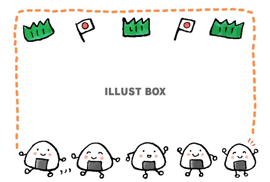おにぎりの上下フレーム飾り枠イラスト無料イラスト かわいいフリー素材集 フレームぽけっと。