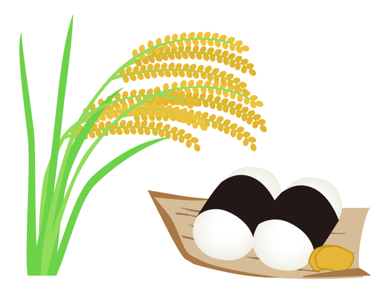 稲穂とおにぎりのイラストイラスト無料・かわいいテンプレート。
