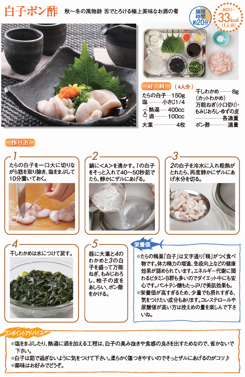 白子ポン酢たらレシピ魚耕ホールディングス。