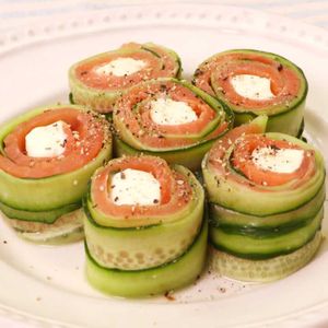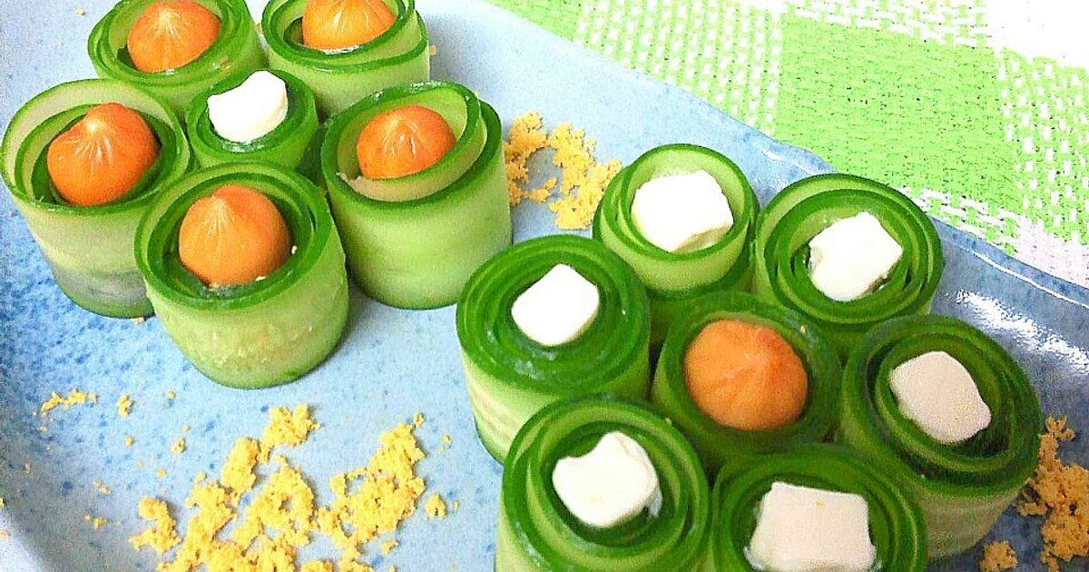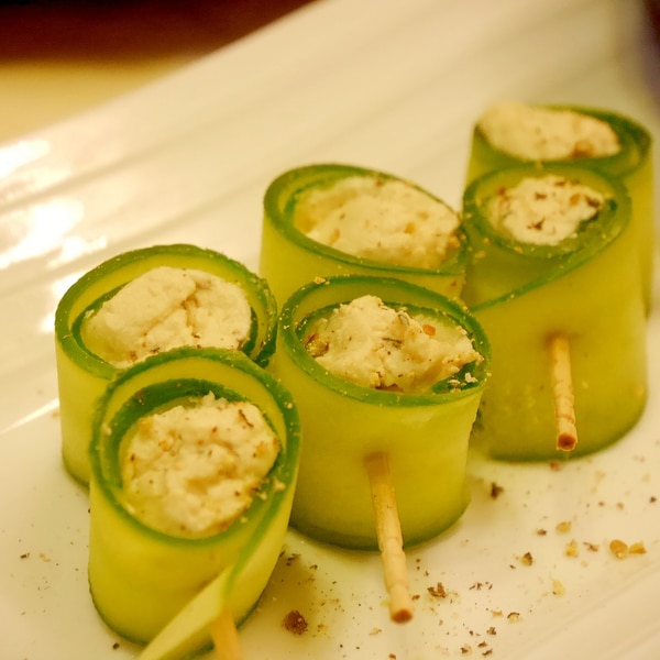 簡単!おもてなし♪ スモークサーモンとクリームチーズのきゅうり巻き。