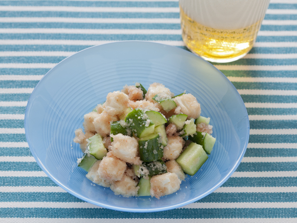 おつまみやパーティーにも使えるもう一品のレシピ「きゅうりとクリームチーズの和風サラダ」 - おかずナビ。