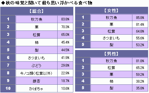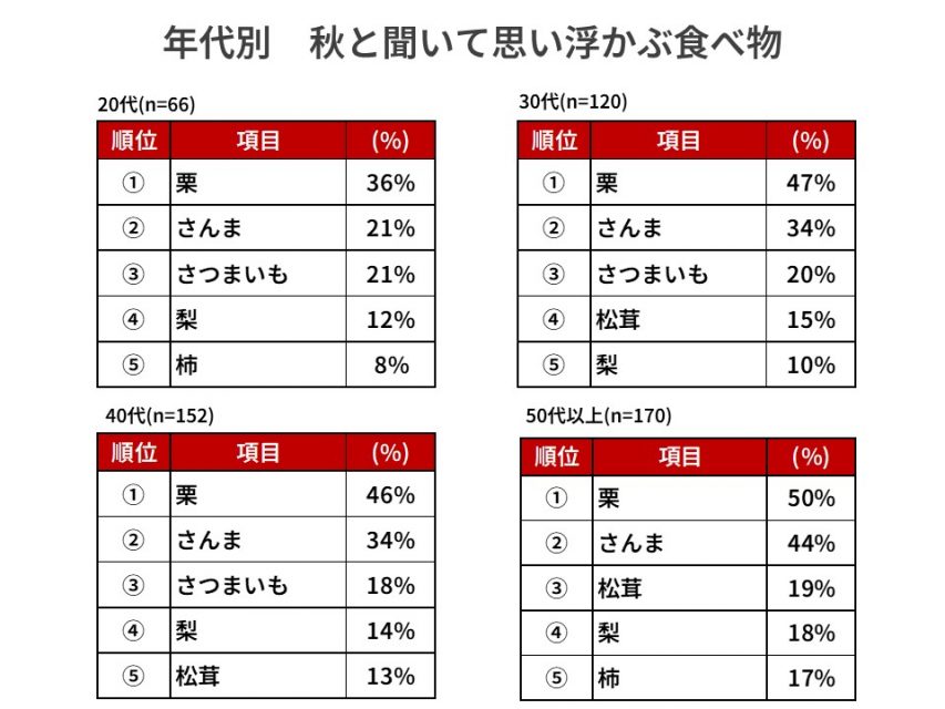秋の味覚といえば○○!思い浮かぶ食べ物は? : LINEリサーチ調査レポートリサーチノート powered by LINE。