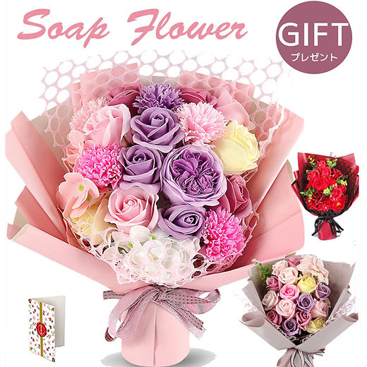 ソープフラワー オシャレ 通販 ブーケ アーティフィシャルフラワー ソープフラワーギフト 造花 フラワーソープ 石鹸フラワー シャボンフラワーアレンジメント 枯れない花 ギフト 母の日 敬老の日 インテリア 飾り 置き物 置物 ソープフラワー ピンク : BACKYARD FAMILY。