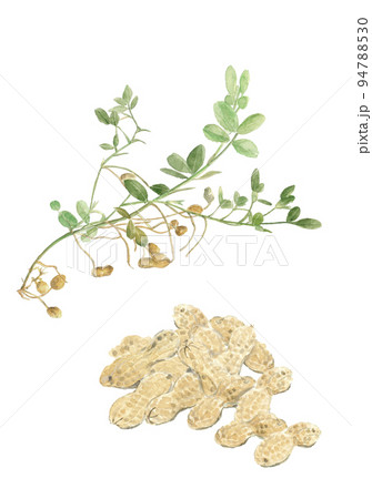 水彩で描いた掘り出しばかりの落花生と収穫した落花生のセットイラストのイラスト素材94788530- PIXTA。