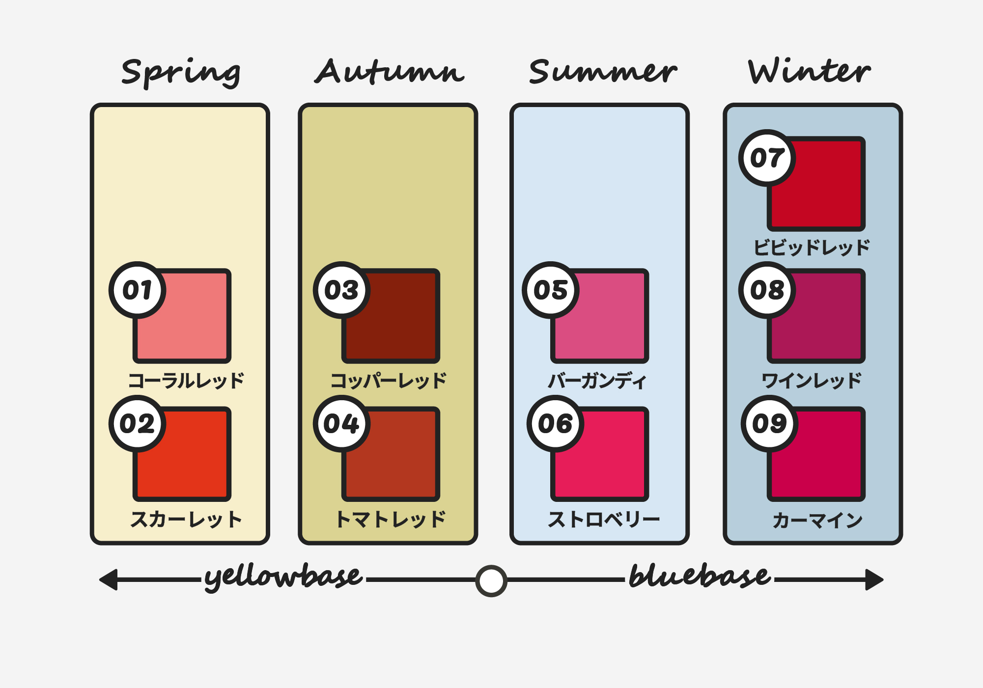 保存版 パーソナルカラーの色見本レッド編4シーズン別の色見本を完全まとめ!パーソナルカラー診断のCOLORS。