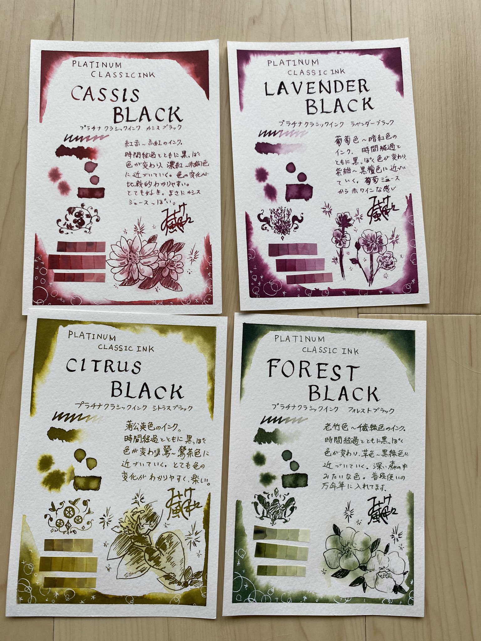 風@みけ風和*・🍏 on X: "インク色見本! プラチナクラシックインクより4色 どれも時間経過で色が黒っぽくなります!2枚目は描いてすぐの時の写真です。インクインク沼色見本クラシックインクPLATINUMhttps:t.co pDZSzi6Pkf"X。