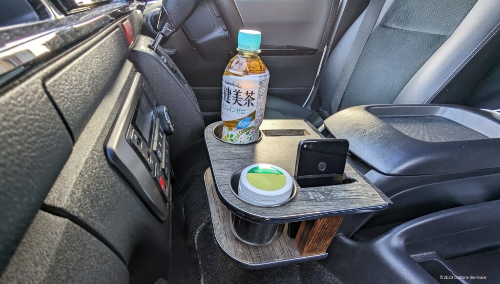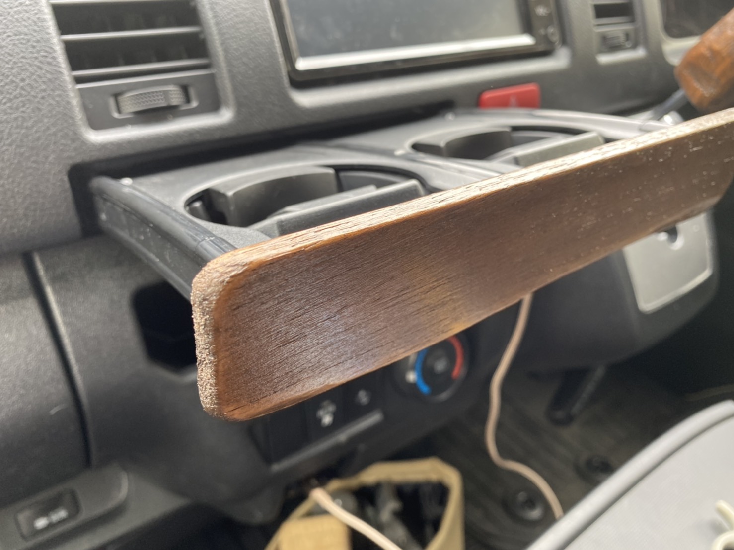 DIY ハイエースのセンターコンソールにドリンクホルダーテーブルを自作~ドライブを快適に♪~レガの快適ハイエース カスタムDIY記。