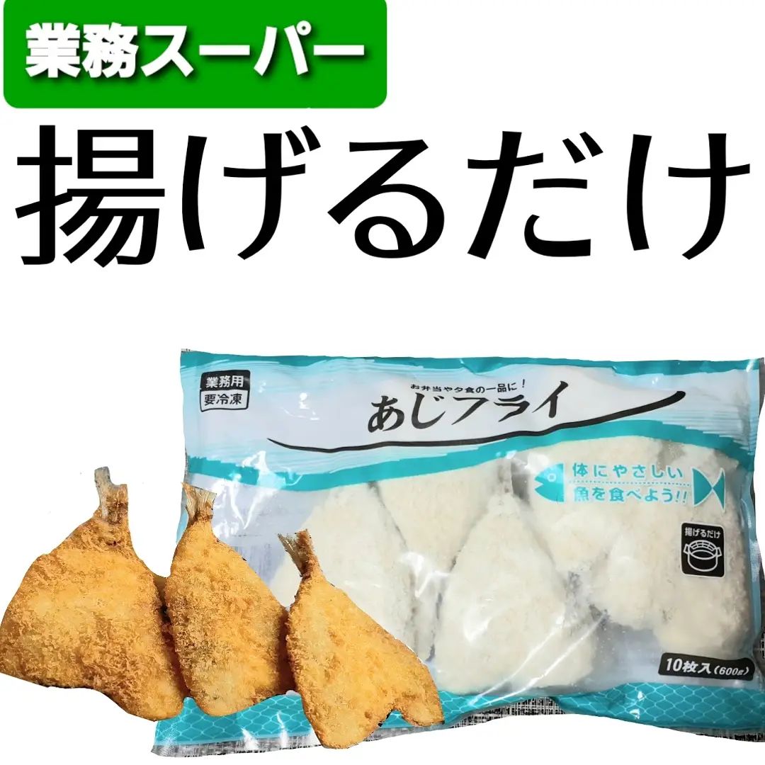 業務スーパーのアジフライ 2回目の購入です😋 油で揚げるだけなので 調理が楽で本当に助かる❗あじフライあじ鯵業務スーパーフライ揚げ物業スー夕飯おかず今日の夕食夕食メニュー業務用スーパー魚魚料理魚介類おうちごはん業務スーパー。