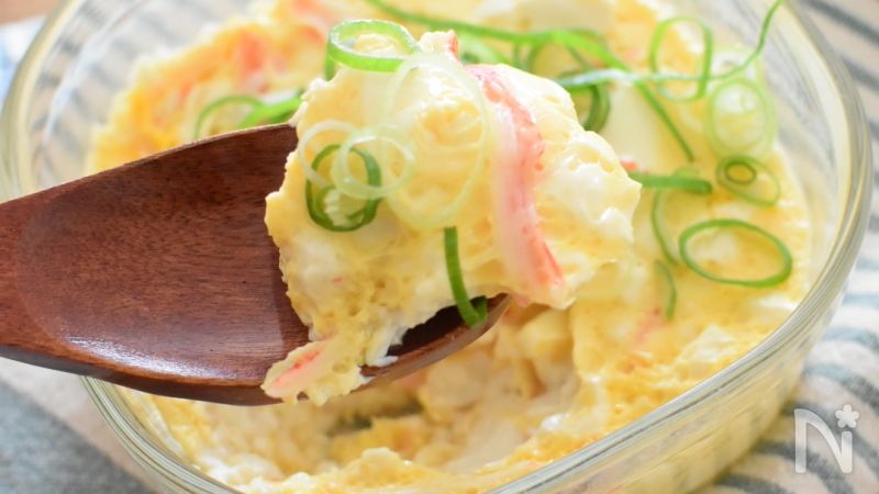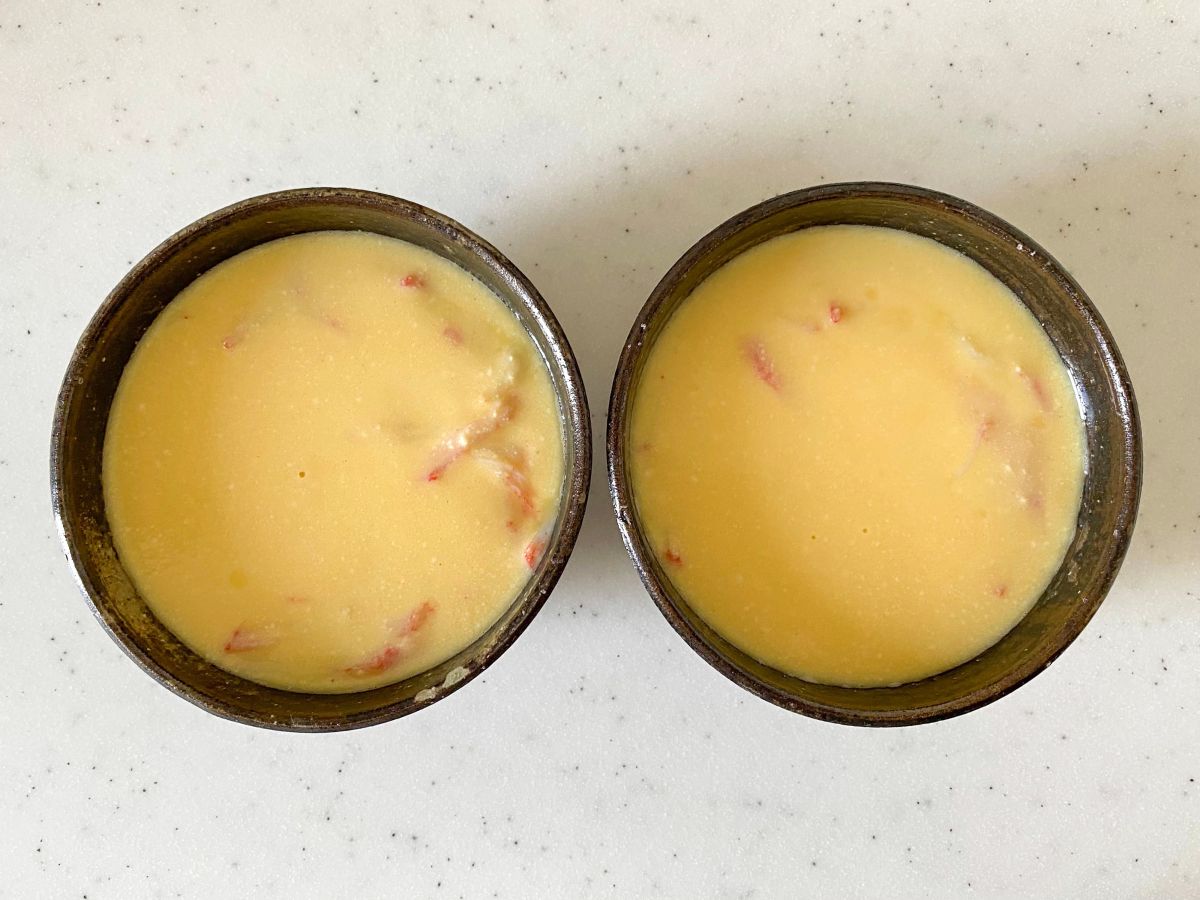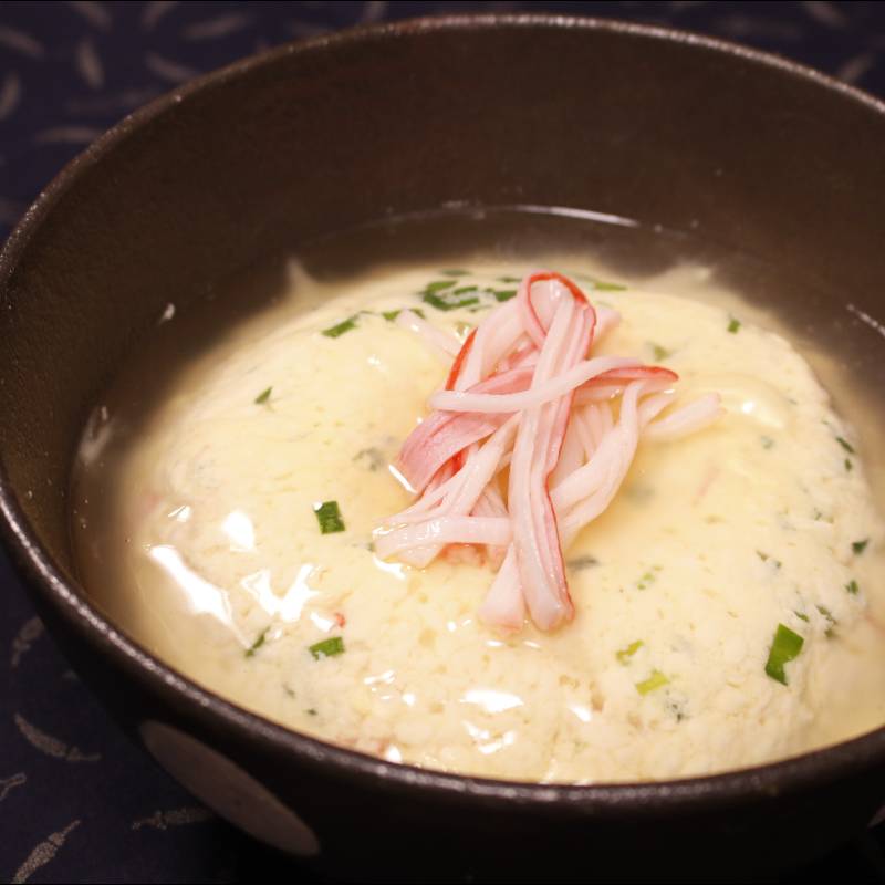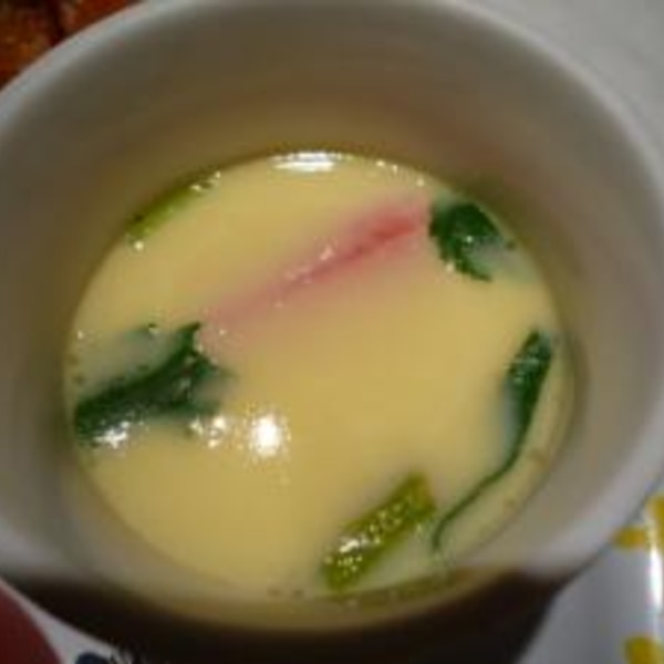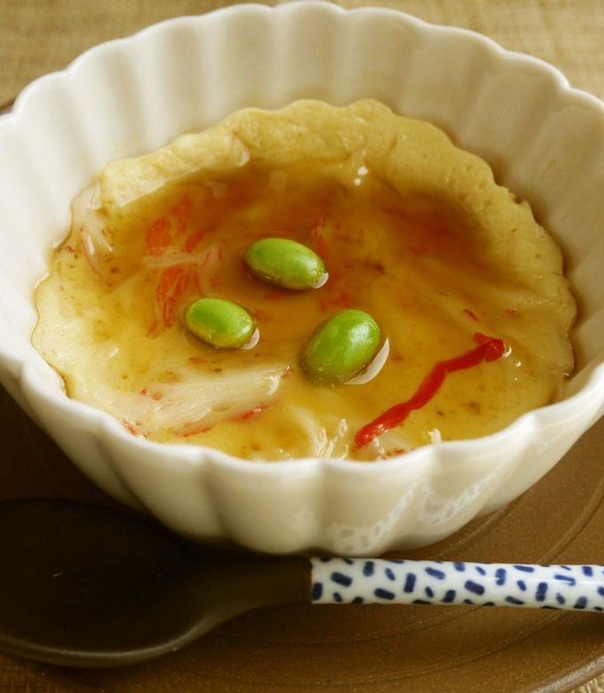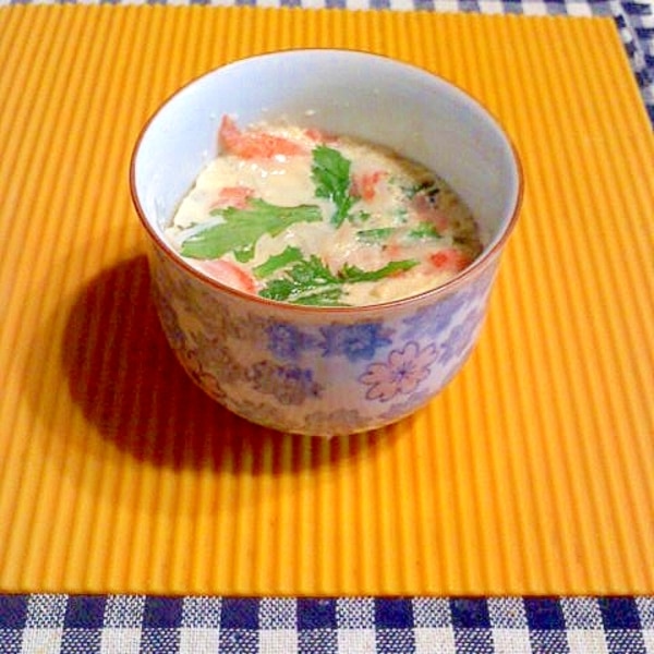 レンジで簡単♪卵とカニカマのふんわり茶碗蒸し。