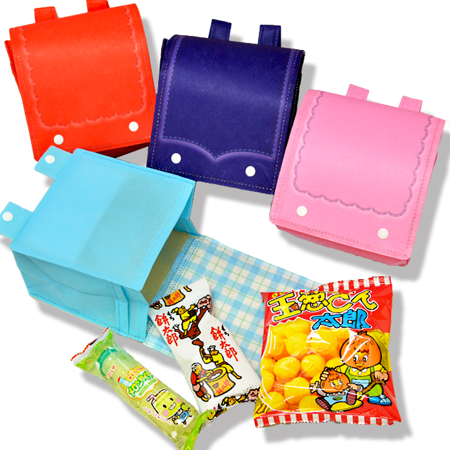 kta-091チェック柄 ラッピング袋入りお菓子詰め合わせ ランドセルバッグ 1個取合せ 詰め合せ 詰合せ。