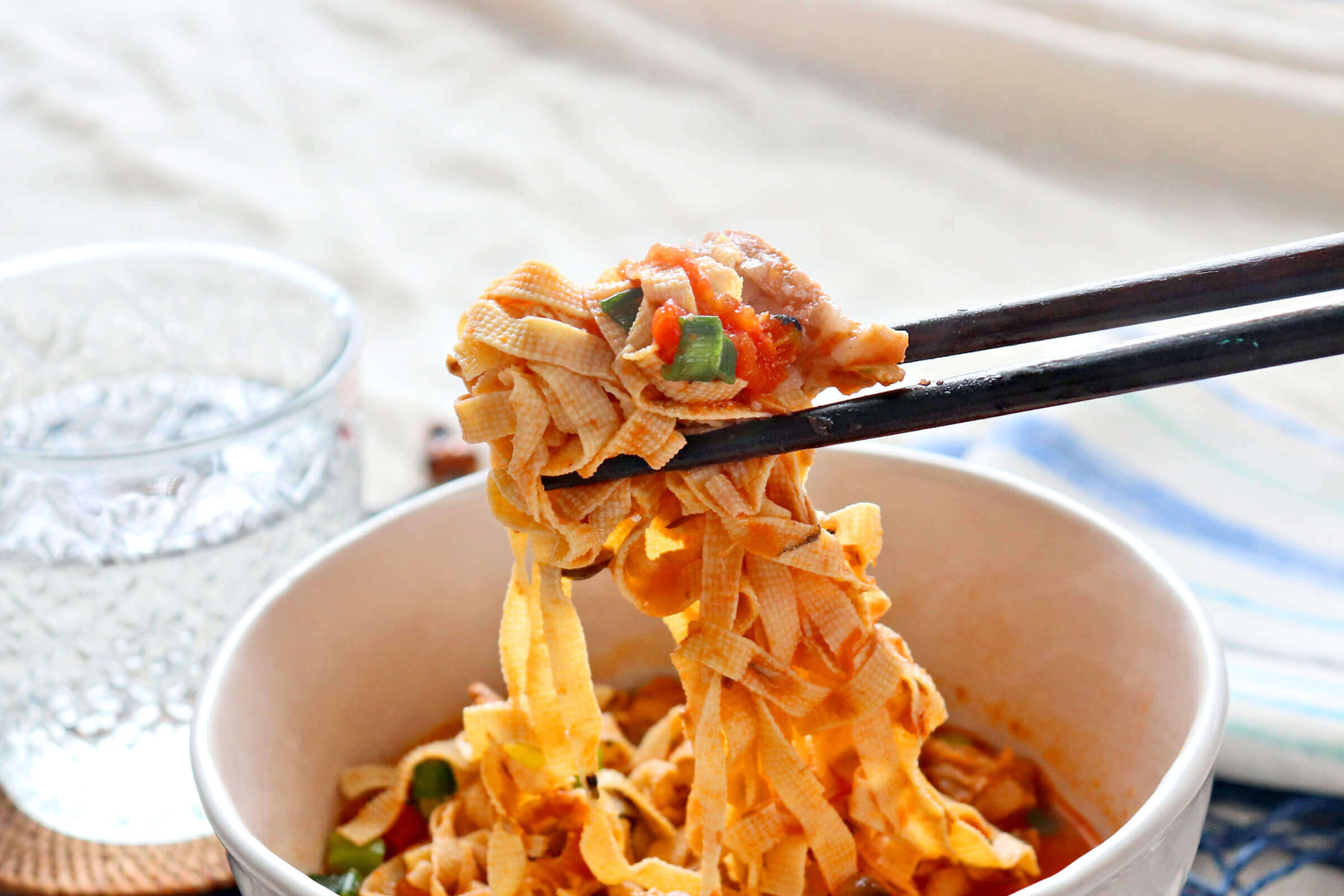 業スー食材でやせる!豆腐皮スライスの脂肪燃えヌードル - 筋肉料理研究家Ryotaのレシピブログ。