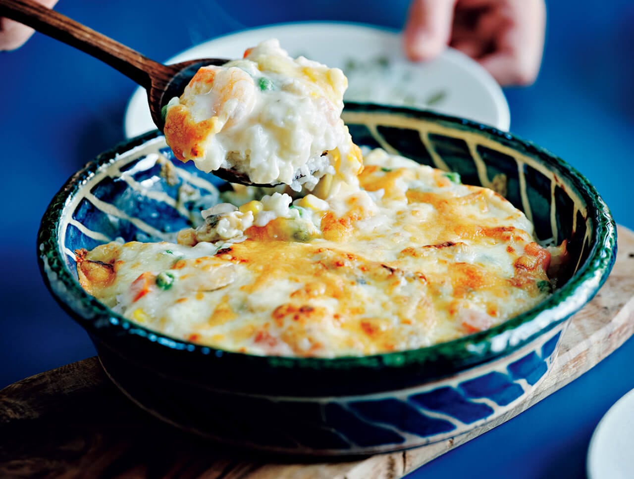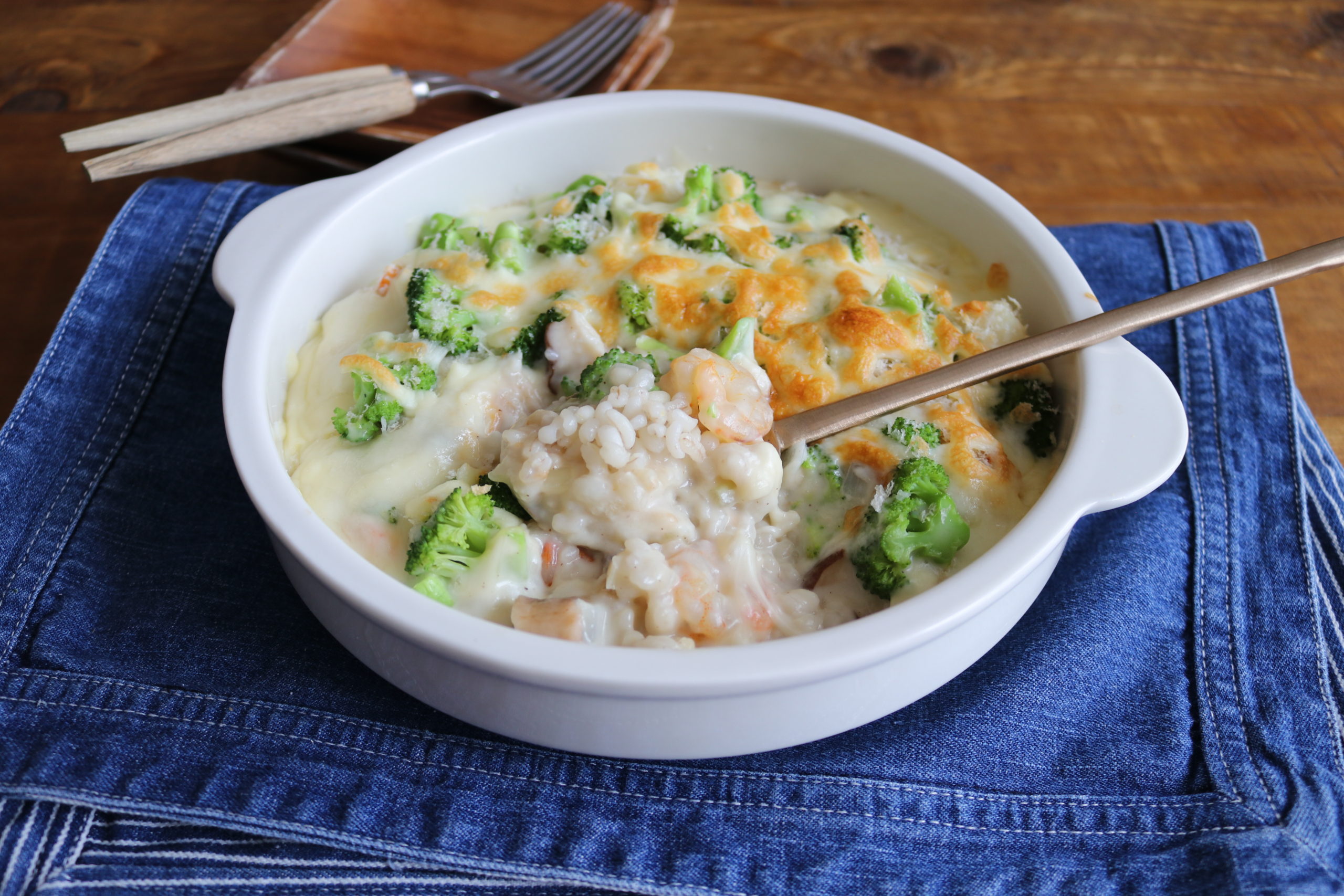 冷凍食材で今すぐ時短調理「シーフードミックスの彩りドリア」レシピ ぐっち夫婦。