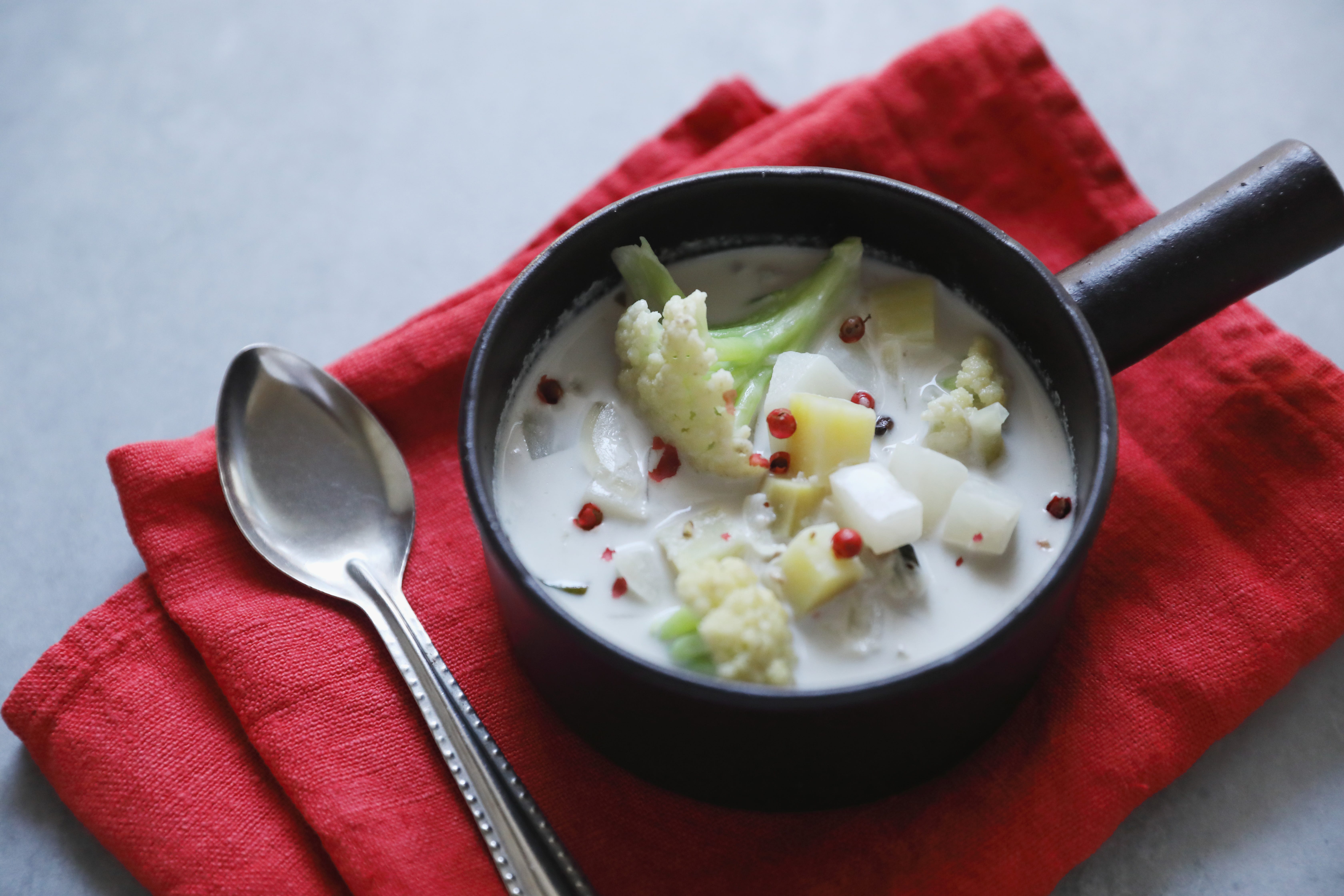 2種の胡椒がピリッと効く! 不思議な白いカレースープのレシピ。