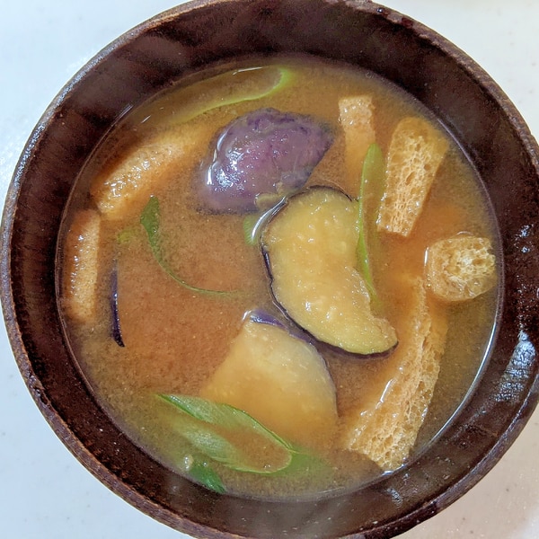 揚げ茄子入り★簡単5品目のお味噌汁。