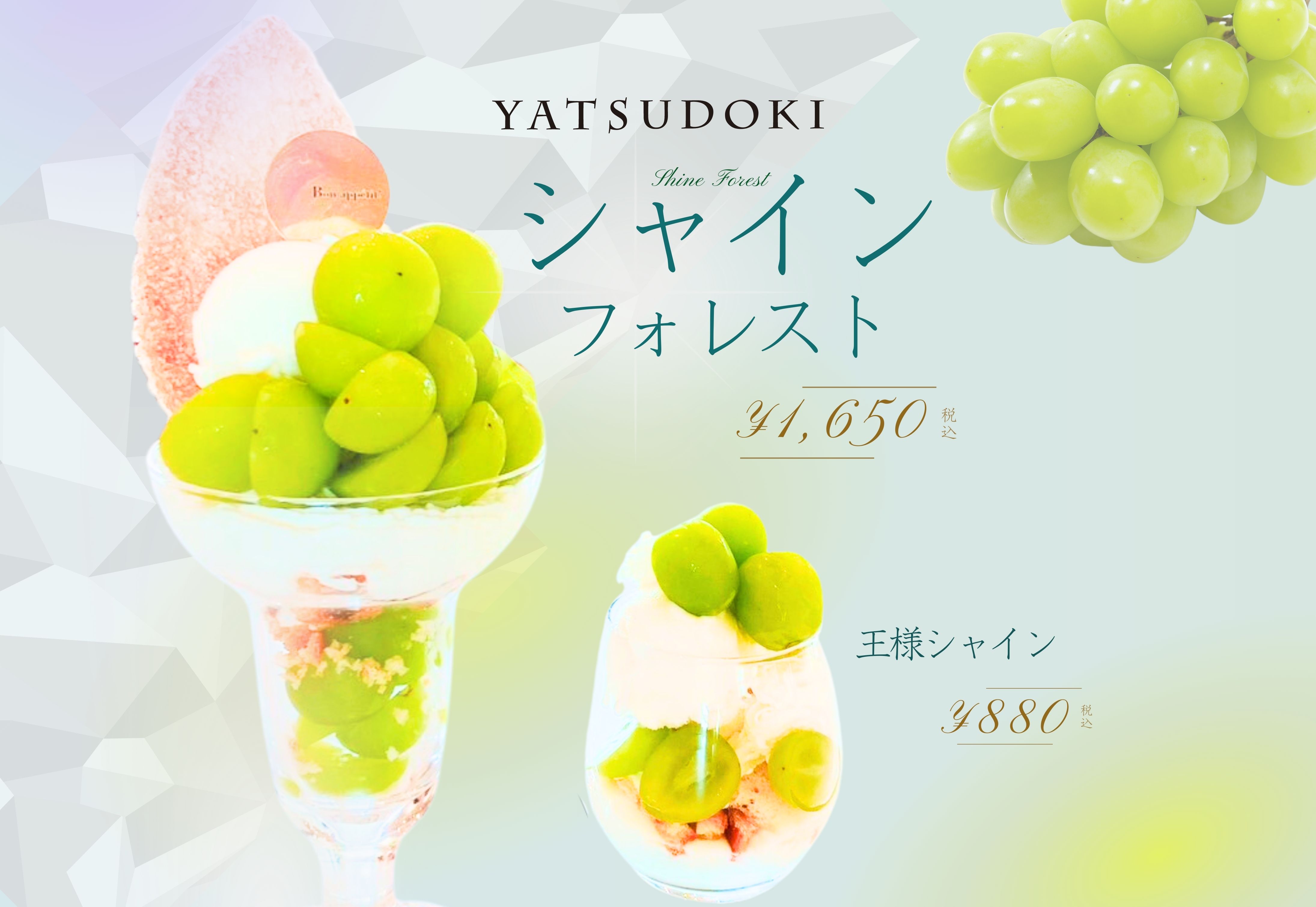 旬のシャインマスカットのパフェがYATSUDOKIテラス石和に登場!シャトレーゼホテル 旅館 富士野屋CHATERAISE HOTELFUJINOYA。