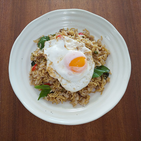 簡単!!カフェごはん ガパオライス風鶏ひき肉炒めごはん。