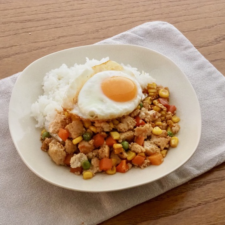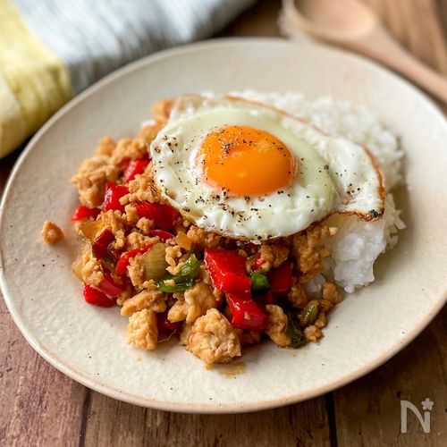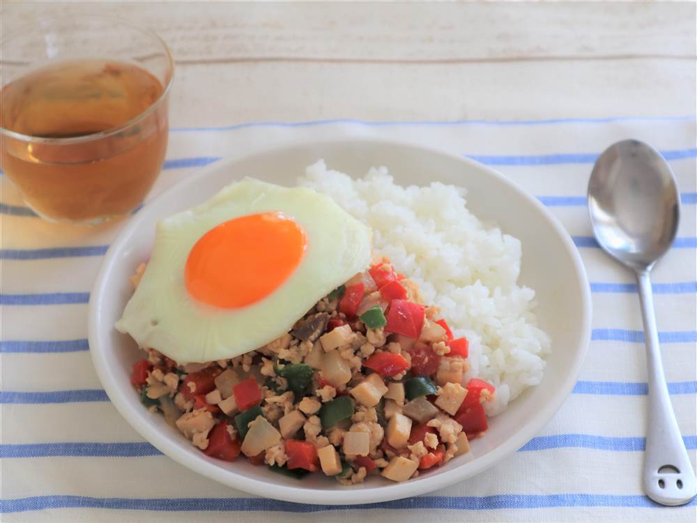 鶏むね肉でタイ料理「簡単ガパオライス風」レシピ。ナンプラーなしでもSATETO さてと。
