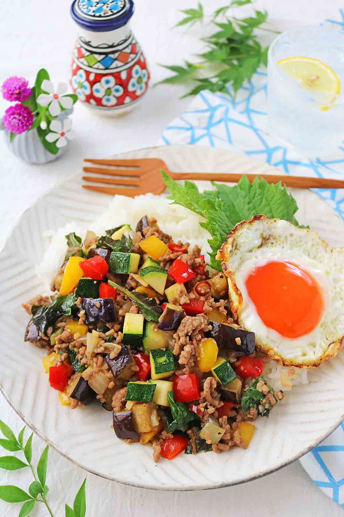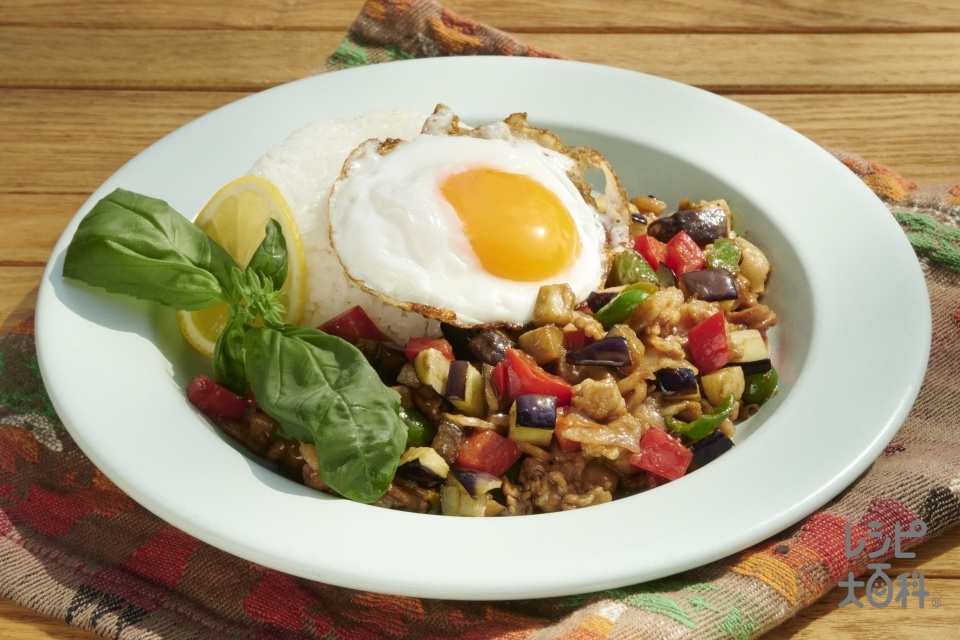 ワンプレートごはん★『野菜たっぷりガパオ風バジル炒め』。