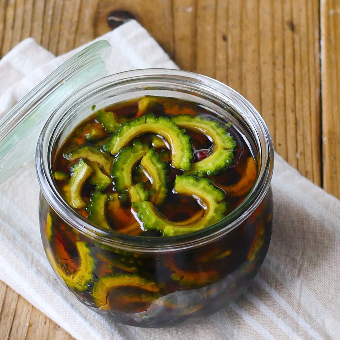 ゴーヤは漬けてもおいしい。らっきょう酢と調味料に漬けるだけ!食べるとき冷蔵庫から出すだけレシピ。