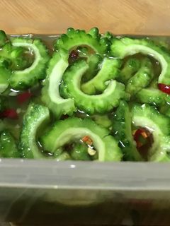 完熟ゴーヤの甘酢漬け 半日漬けます。