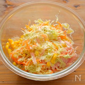 基本のコールスロー ハム&コーンでこども喜ぶ 春キャベツ。