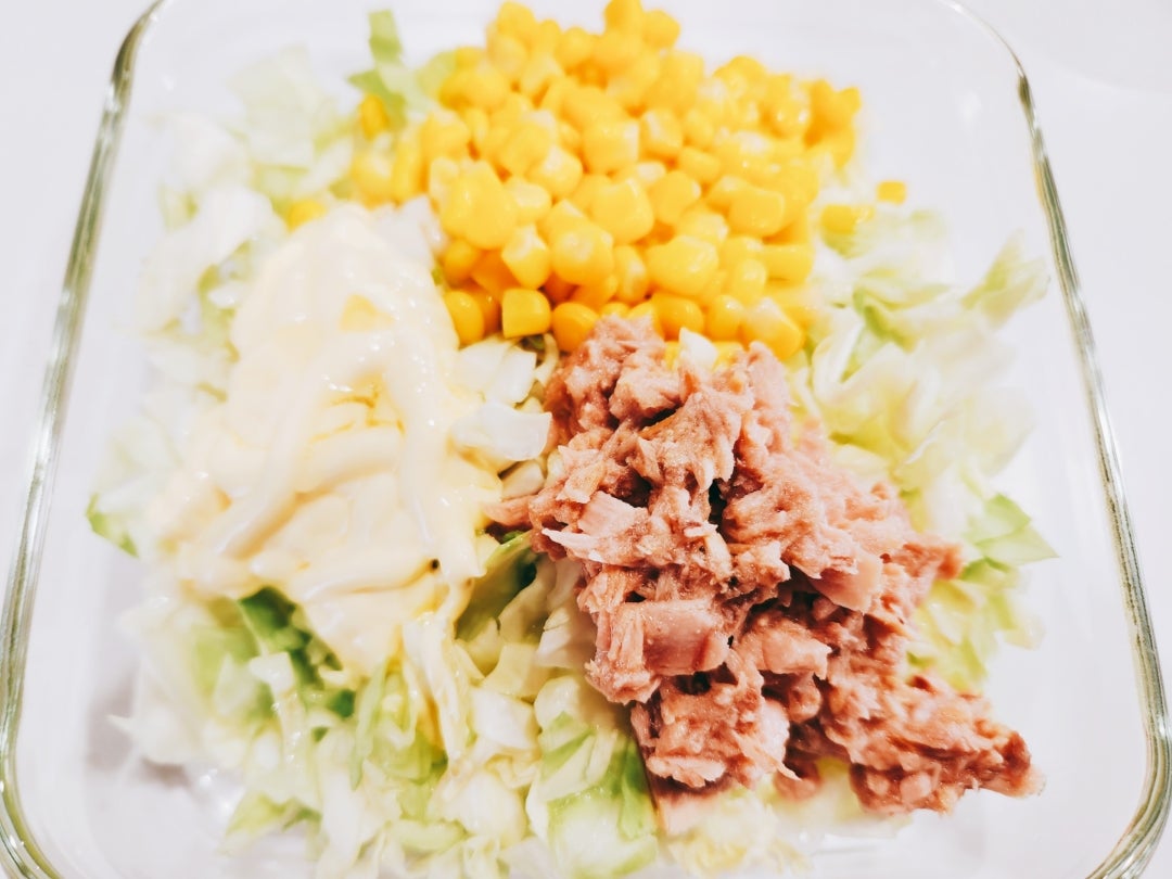 作り置き。お弁当にも!キャベツとツナとコーンのナムル。