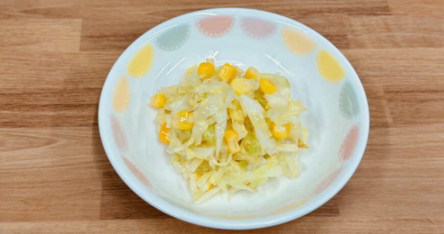 つけ合わせに!コーンとキャベツのコールスロー 副菜。