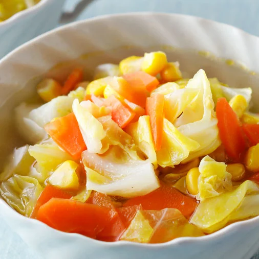 シャキシャキ食感! 春キャベツとコーンバター蒸し。