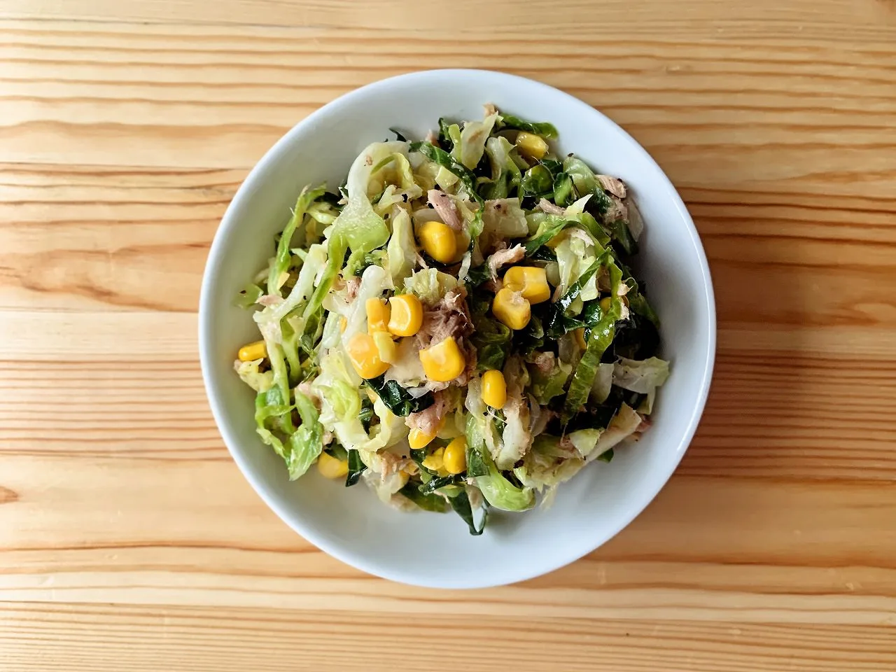 コーン入りで子供も食べやすい、キャベツとツナで作るコールスローサラダ~味の決め手はだしまろ酢のみ~ 副菜・ヘルシー・簡単混ぜるだけ:Syuntaroの『食の荒野を彷徨う』。
