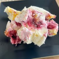 頂いたよ! 生クリームをクレープの生地に巻いて冷凍しました。 シューアイスの 極上版です。 包丁でサクサクと切れるよ。 何かフルーツ入りです。大満足〜〜😋Facebook。