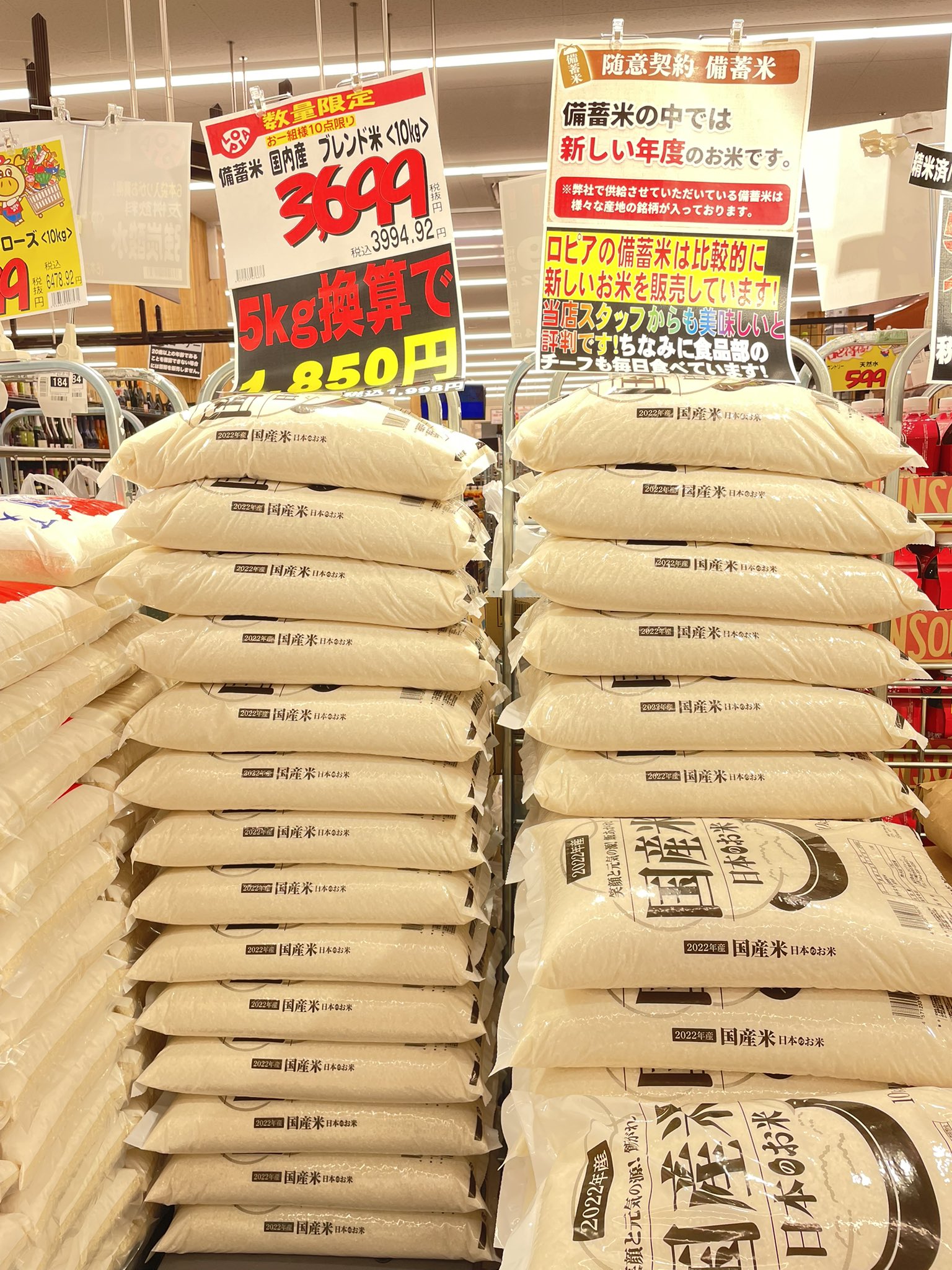 こんにちは😀 もうご存知かと思いますが 備蓄米!入荷しております✌️✌️✌️ 随意契約備蓄米、2022年度産です!税抜10kg3800円です! 税込4104円水加減、少し多めの方がいいみたいです!☆入荷日によっては購入制限させていただく日もございます。ご了承ください。