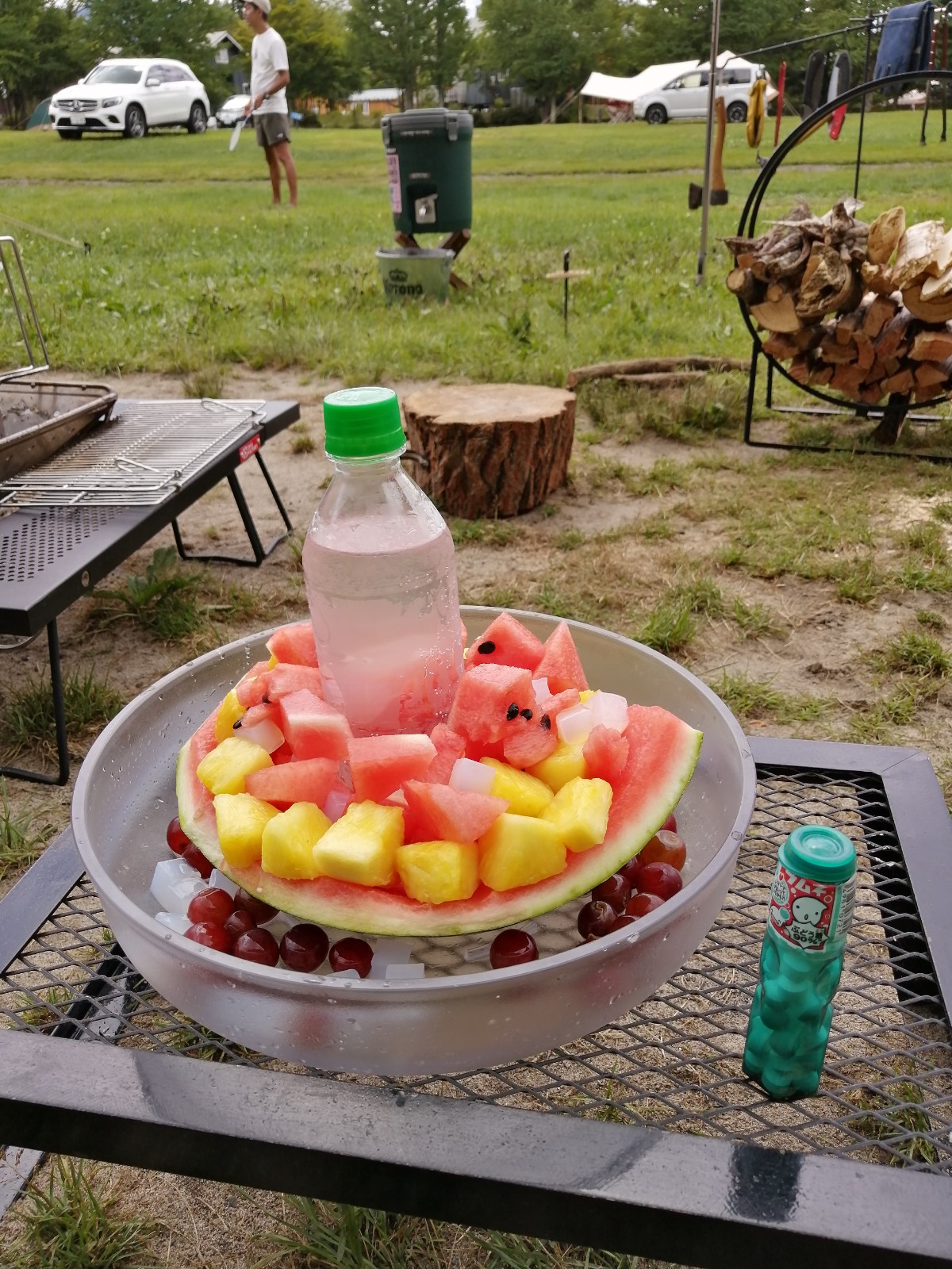 キャンプレシピ 盛り上がる!映える!とうわさの噴水フルーツポンチに挑戦してみました! 次回の反省も‥ キャンプ初心者家族のあれこれブログ。