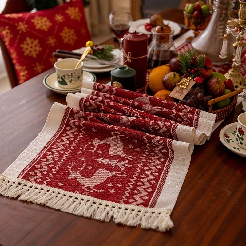 テーブルランナー おしゃれ インテリア クリスマス 綿麻 長方形 ダイニング 北欧風 飾り かわいい シンプル 食卓 クロス デコレーション テーブルランナータッセル付き クリスマス 赤 北欧風 テーブルクロス モダン おしゃれ レッド インテリア 北欧テーブルセンター。
